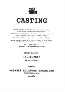 Chceš hrať vo filme? Neváhaj a zúčastni sa castingu v nedeľu, 16.12.2018 od 18.hodiny v spoločenskej sále v prístavbe MsKS v Hnúšti. Tešíme sa na každého z vás!