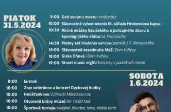 Druhá májová nedeľa patrí všetkým maminkám, ktoré pozývame o 15-tej hodine do Domu kultúry v Hnúšti na podujatie DEŇ MATIEK Potešia vás tance, spevy, husličky a básničky, ktoré pre vás pripravili deti zo ZUŠ J.Valacha, DFS Zrkadielko, súboru moderného tanca Bzučo a Taekwondo klubu Hnúšťa. Vstupné dobrovoľné