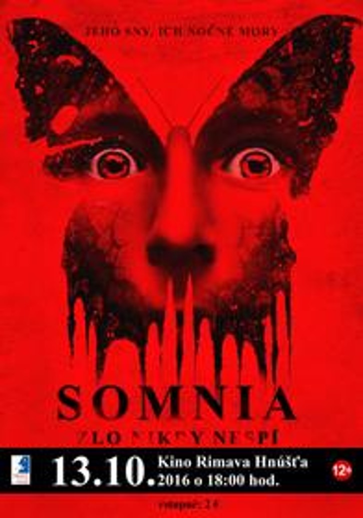 Kino Rimava vás pozýva na najbližšie premietanie vo štvrtok 13.10.2016 na thriller SOMNIA: ZLO NIKDY NESPÍ o adoptovanom chlapcovi, ktorého sny sa stávajú skutočnosťou, keď spí. Premietanie začína o 18:00 hod. Vstupné: 2 €