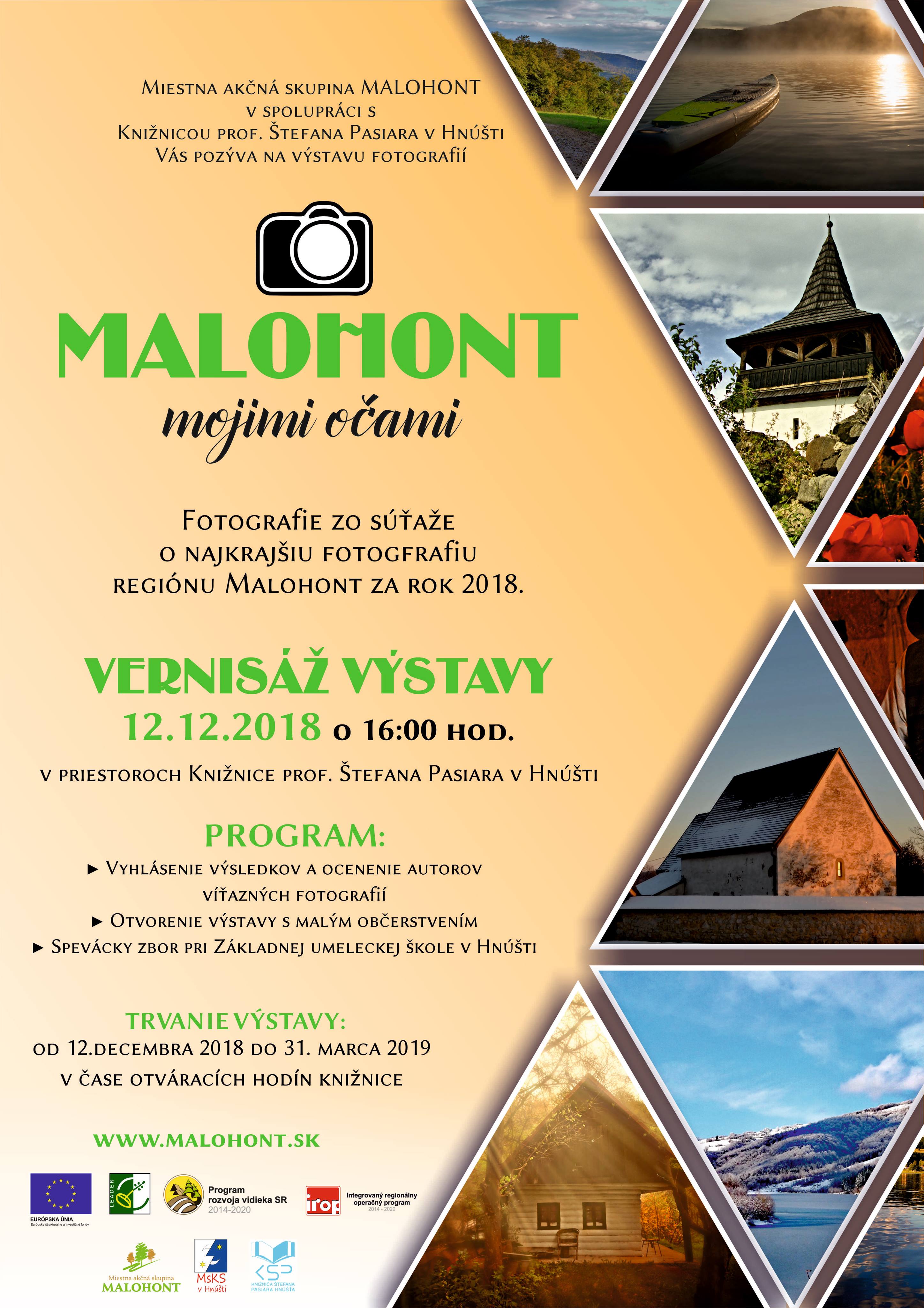 Srdečne vás pozývame na vernisáž výstavy fotografií zo súťaže Malohont mojimi očami 2018, ktorá sa uskutoční v Knižnici prof. Štefana Pasiara v Hnúšti v stredu, 12.12.2018, o 16:00 hod.