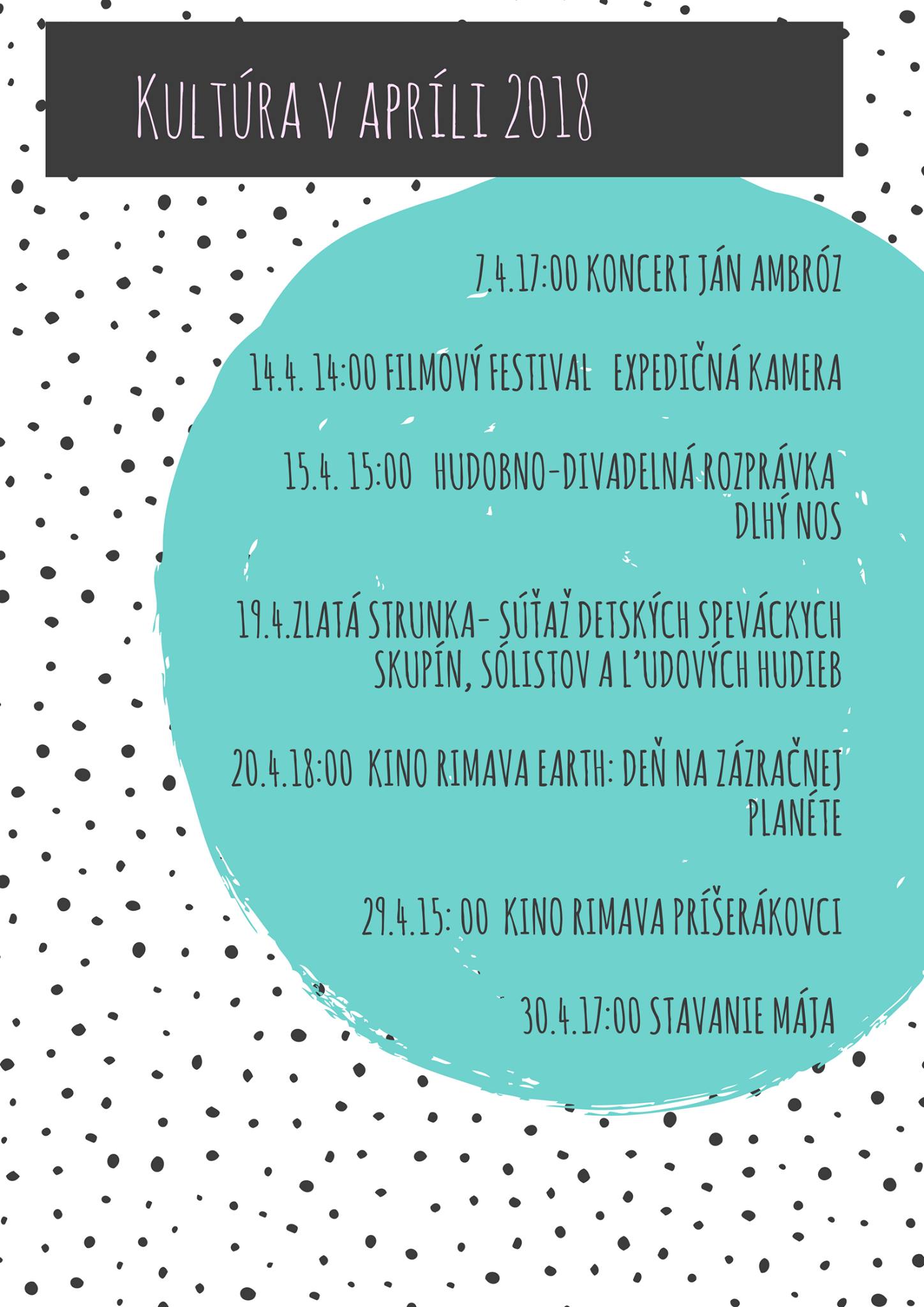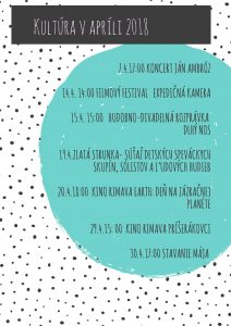 Prehľad kultúrnych podujatí na apríl 2018
